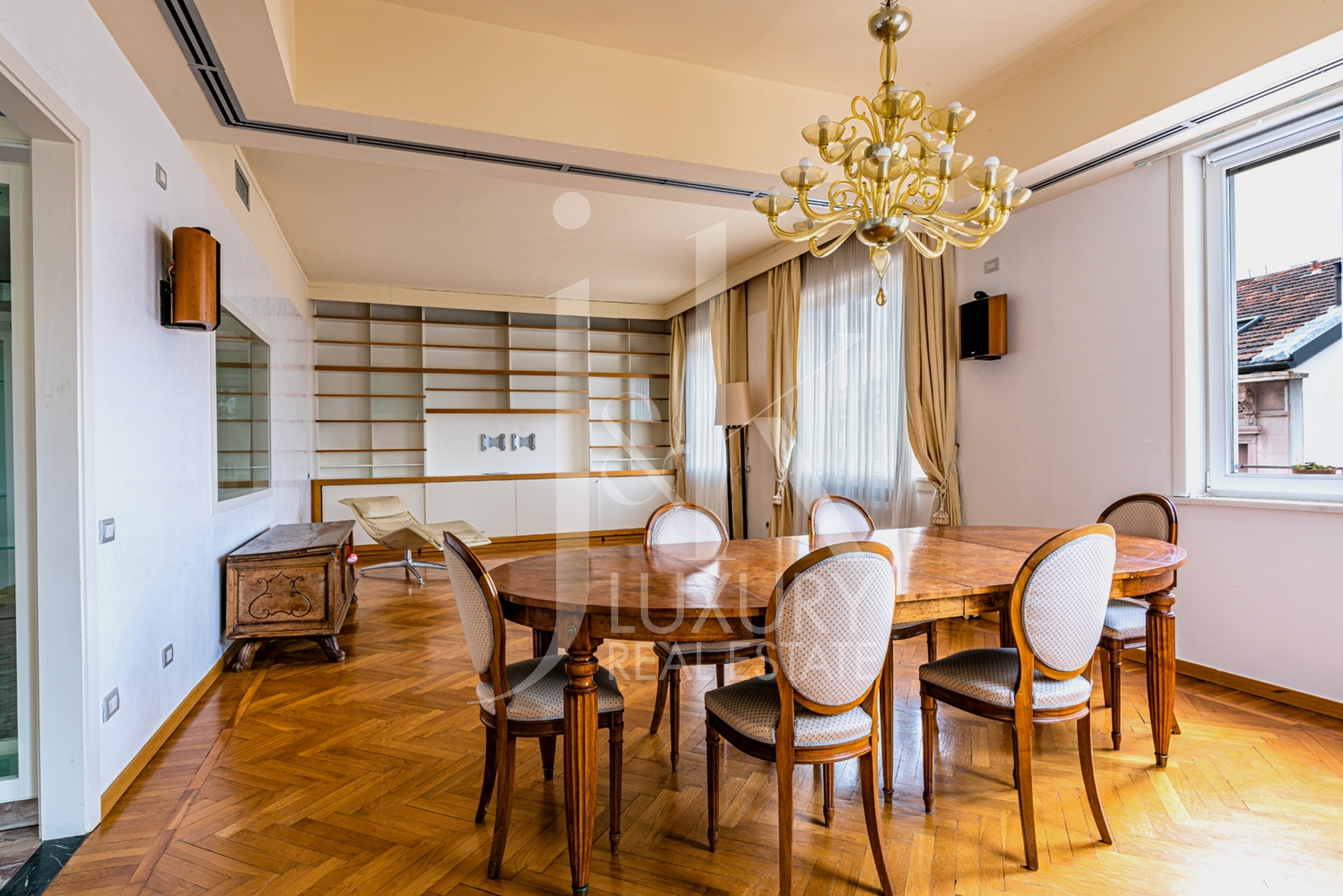In stabile signorile con servizio di portineria, disponiamo in esclusiva di appartamento ristrutturato posto al quarto piano e servito da ascensore. La proprietà, con doppia esposizione, ha una metratura di 250 mq e dispone di una spaziosa terrazza. Al suo interno l'immobile è composto da: ingresso, ampio soggiorno con accesso diretto alla terrazza, zona pranzo, cucina abitabile, bagno di servizio, disimpegno, quattro camere da letto e due ulteriori bagni. Grazie alla presenza di ampie vetrate, che caratterizzano la zona giorno, la soluzione risulta molto luminosa, l'appartamento inoltre è arricchito dalla presenza di pavimentazione in parquet a spina di pesce posato all'italiana, bagni in marmo, impianto di allarme e filodiffusione. Completa la soluzione la presenza di un box all'interno del contesto.